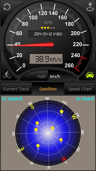 GPS儀表盤 可以追蹤速度、距離、時間、位置等,并可得到啟動時間、耗費(fèi)時間、距離、平均速度、最大速度和高度等信息。
