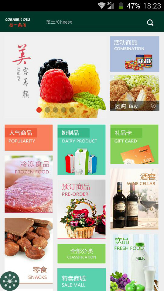 每一角落精品超市網(wǎng)上移動商城,現(xiàn)已開通網(wǎng)上銷售及配送。每一角落連鎖超市是一家經(jīng)營世界各地優(yōu)質(zhì)食品的連鎖超市。顧客大多為居住在中國的外籍人士以及本地的美食愛好者。奉守著“以最優(yōu)質(zhì)的服務(wù)換您最滿意的笑容”的宗旨,商品的品種包括來自意大利、美國、法國、瑞士、日本、等地。所涉及的商品種類包括芝士、餐料、葡萄酒、速凍食品等。【更新日志】