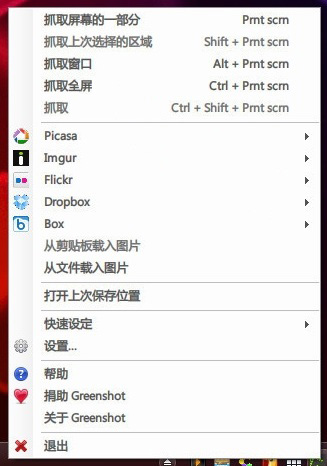 此外,你可以通過右鍵單擊任務(wù)欄上Greenshot的圖標(biāo)進行軟件設(shè)置。一般的設(shè)置,MK就不一一解說,不會英文的話就金山詞霸或者谷歌翻譯一下。說不定你的英文突飛猛進。一般截圖軟件在截圖時會發(fā)出咔嚓的一聲,而Greenshot在這基礎(chǔ)上在加上一個閃光燈的設(shè)置,截圖就像拍照。挺喜歡這樣的搞作,雖毫無用處。