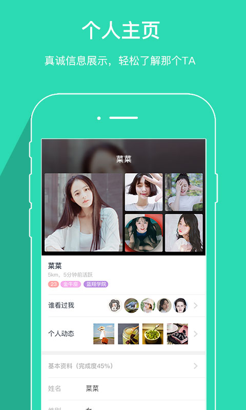 【簡單】左滑忽略、右滑點贊,上滑即可配對聊天;【發(fā)現(xiàn)】填寫畢業(yè)院校,為你推薦老同學,讓你每次都有新發(fā)現(xiàn);