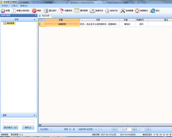 3、建好類別后,就可以向其添加資料了,比如想添加一條郁達(dá)夫先生的《故都的秋》,我們首先在網(wǎng)頁(yè)上將其復(fù)制。