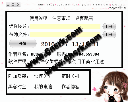 可將任意文件隱藏在一張圖片里面(但部分功能不兼容WIN7)