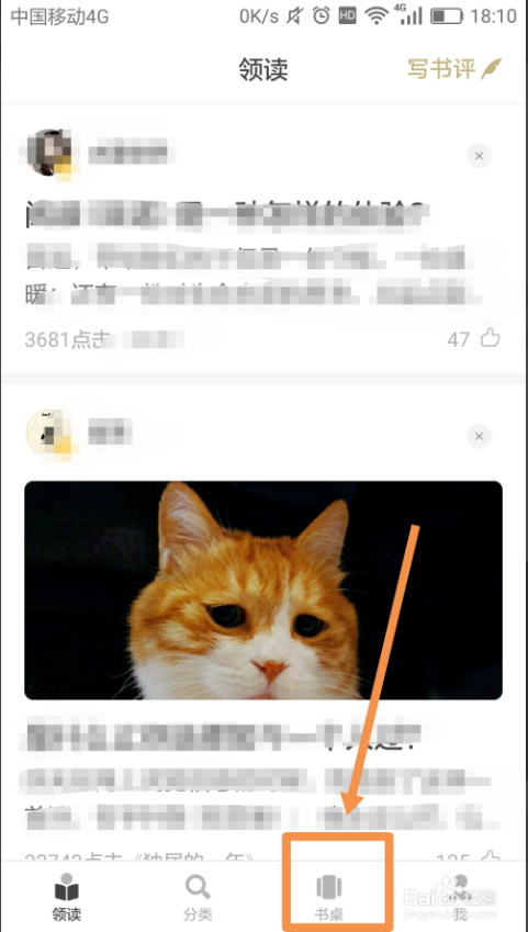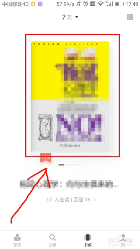 進入蝸牛讀書的【書桌】界面,然后書桌中找到要閱讀的書并點擊,如圖: