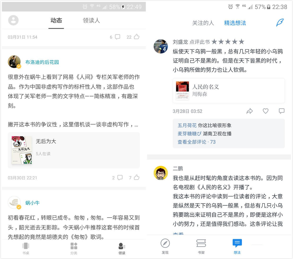 蝸牛讀書和微信讀書都提供書評功能,可以了解大家對某書的看法。蝸牛讀書提供的是領讀人的點評,微信讀書提供的是某本書的熱門評論。