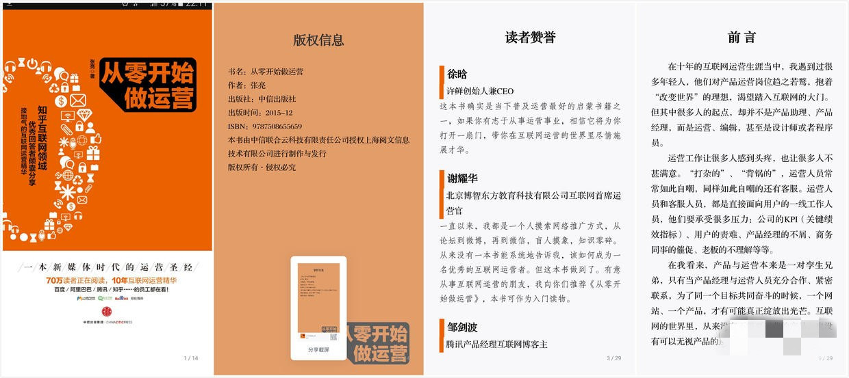 在閱讀的基本功能上,加入了目錄、書簽、筆記、評論以及閱讀模式等輔助功能,滿足了用戶的基本閱讀需求。