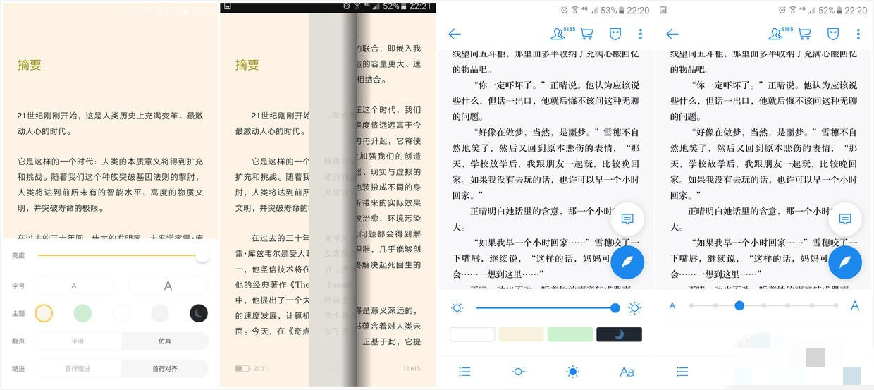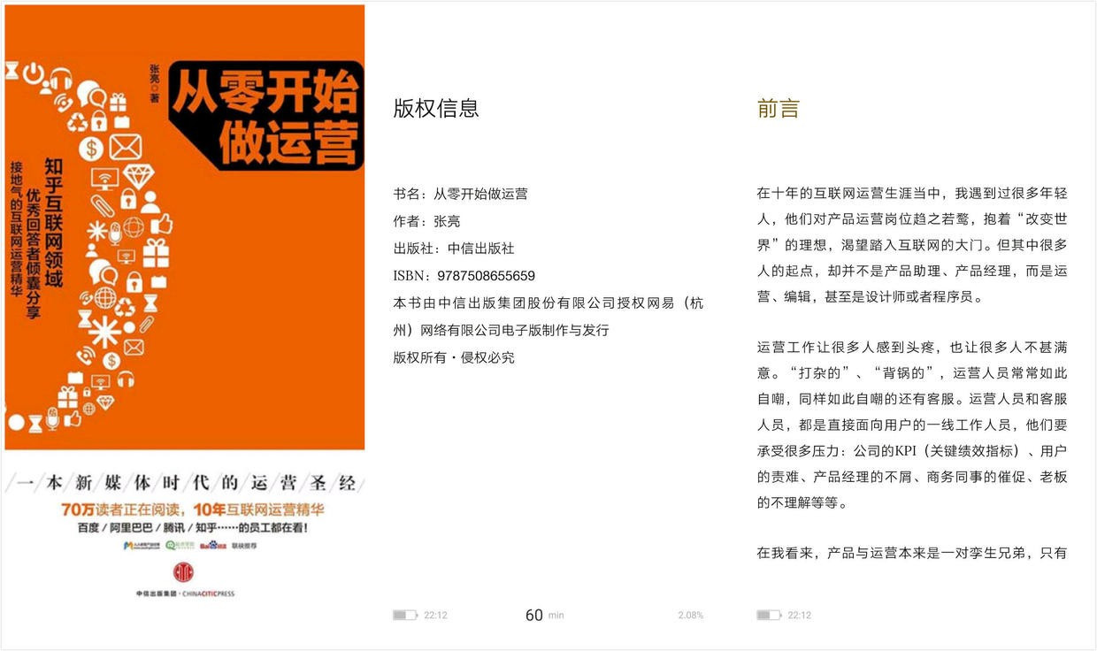 選取了兩個app都有的一本書進行對比,蝸牛讀書的閱讀體驗相對于微信讀書稍顯青澀,很多書排版排的像是盜版書。同時,蝸牛讀書謎一樣的翻頁動畫似乎還停留在5年前。亟待改進的就屬排版了。