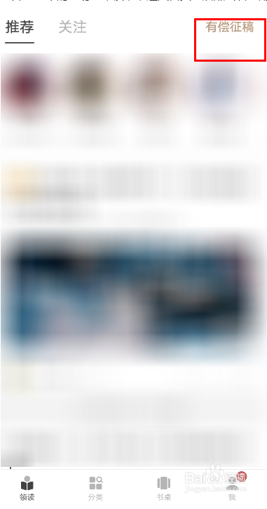 打開手機中的網(wǎng)易蝸牛讀書,進入首頁之后點擊右上角的有償征稿