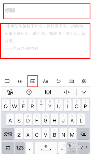 進入內(nèi)容頁之后輸入文章的標題和內(nèi)容,如果想添加圖片就點擊如圖所示的圖標