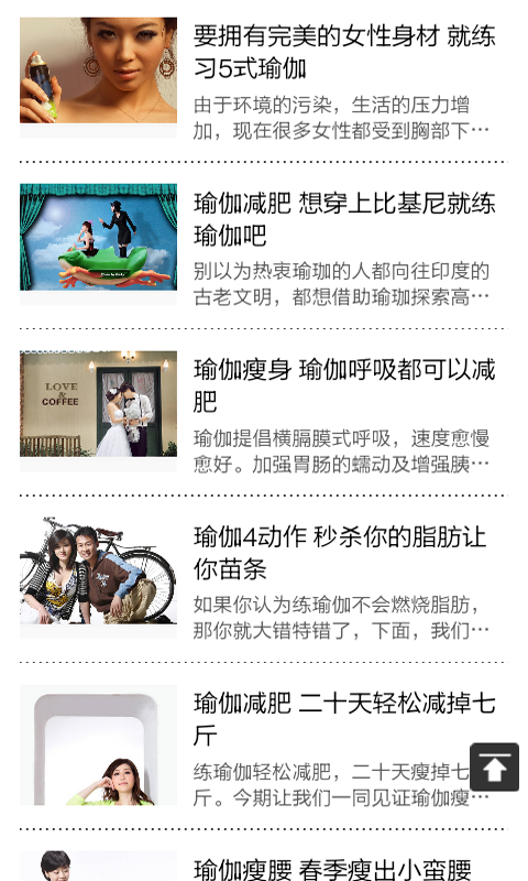 塑身減肥瑜伽 v2.0 安卓版 塑身減肥瑜伽app是一款練習瑜伽的必備手機應用,軟件里包含了各種瑜伽詳細文字講解和豐富的瑜伽資訊。旨在讓大家愛上瑜伽、了解瑜伽,讓瑜伽幫助我們塑造完美體型。