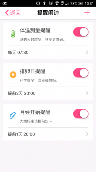 3、日歷界面提供豐富、個(gè)性化的經(jīng)期管理。