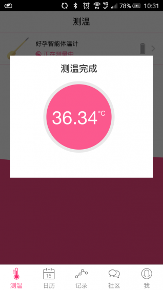 使用者通過(guò)觀察一個(gè)生理周期內(nèi)的基礎(chǔ)體溫曲線(xiàn)變化情況,并與系統(tǒng)自身提供的豐富基礎(chǔ)體溫曲線(xiàn)庫(kù)進(jìn)行對(duì)比,從而掌握準(zhǔn)確的宜孕時(shí)機(jī),達(dá)到有效備孕或避孕的目的。
