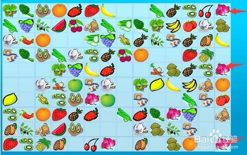 (3):使用鼠標(biāo)直接點(diǎn)擊排放在一起的三張或多張相同的果蔬水果圖片達(dá)到消除條件。