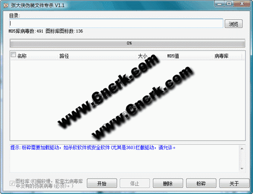 專用查殺偽裝病毒(偽裝文件夾、偽裝視頻、偽裝音樂、偽裝Office、偽裝殺毒軟件)。除了擁有MD5庫外,還擁有大量圖標(biāo)庫,能夠發(fā)現(xiàn)并查殺病毒庫中沒有的偽裝病毒。