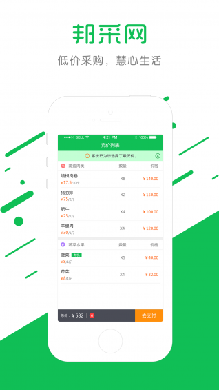 邦采APP是一個能夠幫助餐飲企業(yè)及企事業(yè)單位食堂采購各類原材料、配料并送貨上門的APP軟件,解決了餐飲及企事業(yè)單位負責人在采購方面的種種困惑,真正做到“價格便宜、送貨上門、質量保證”的互聯(lián)網(wǎng)+采購新模式。【更新日志】