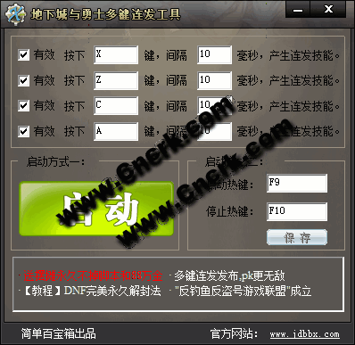 地下城與勇士多鍵連發(fā)工具 V1.0.4081 簡體中文綠色免費(fèi)版 連發(fā)解釋為連續(xù)發(fā)射,重復(fù)同一個(gè)步驟,DNF游戲中按X鍵為普通攻擊,每次按一下,就攻擊一下,而且有時(shí)間的間隔,使用DNF連發(fā)后,按定攻擊鍵即可連續(xù)發(fā)招,而且大大縮短了按鍵的時(shí)間,不管是PK還是刷圖,絕對(duì)是不可不用的工具.