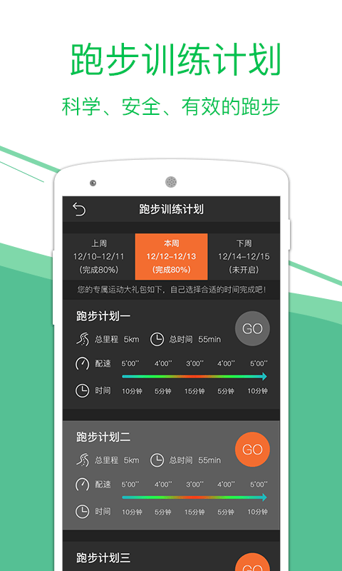 提供完善的跑步能力評估服務(wù),讓您了解自身能力,更為科學(xué)的跑步,減少受傷的情況。對于自身運動能力較為關(guān)注的人群,提供預(yù)約運動能力測評功能,您可預(yù)約后到線下站點進行評估,了解自身跑步能力狀況。我們的軟件更加懂您,可以生成適合您的個性化跑步訓(xùn)練計劃。通過科學(xué)的跑步訓(xùn)練,給您一個強健體魄。