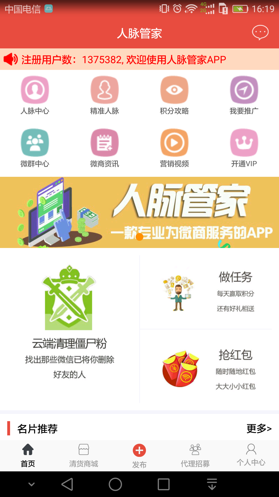 人脈管家app是一款便捷的掌上人脈資源服務(wù)平臺(tái)。這里有各色各樣的豐富的人脈資源,可為作為商家的你提供更多的資源,將自己的產(chǎn)品盡量多的推銷(xiāo)出去。