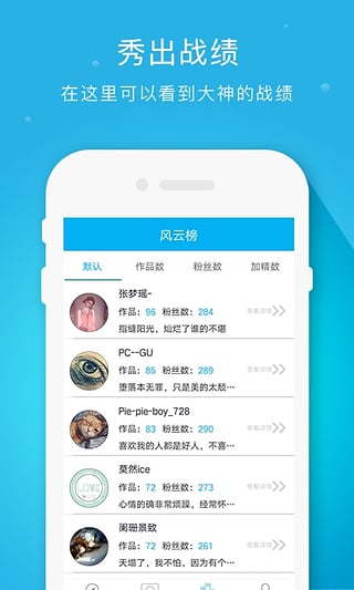 想看玩家的作品數(shù),粉絲數(shù)?!一切皆在風(fēng)云榜!高手過招,簡直不要太精彩!