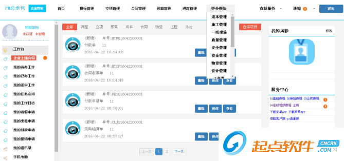 系統(tǒng)由管理員進(jìn)行權(quán)限分配及設(shè)置后,員工按權(quán)限進(jìn)行操作,同時系統(tǒng)采用先進(jìn)的BPM流程管理,可以幫助企業(yè)實現(xiàn)業(yè)務(wù)的整合及讓工程業(yè)務(wù)運行更加順暢。系統(tǒng)采用先進(jìn)的前臺技術(shù),界面設(shè)計簡潔,員工操作簡便。