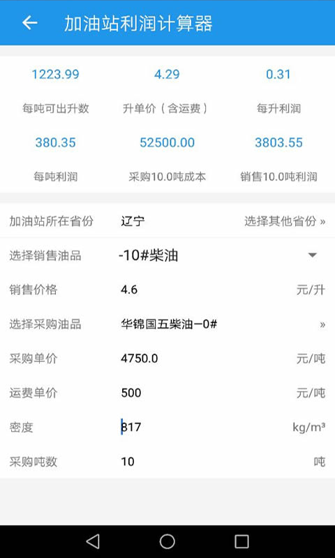 1、 市場(chǎng)行情:全國(guó)各大煉廠成品油實(shí)時(shí)價(jià)格更新2、 利潤(rùn)計(jì)算:加油站進(jìn)一次油,只需要輸入錢數(shù)和噸數(shù),系統(tǒng)自動(dòng)算出零售價(jià)、每噸出的總的升數(shù),每升的毛利率,一噸的總利潤(rùn)。