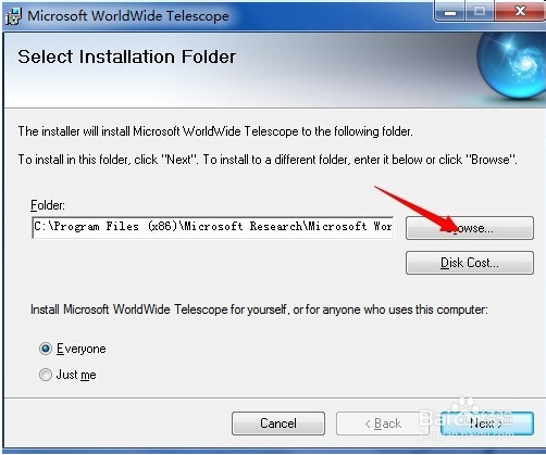 這里是選擇安裝位置,默認裝在C盤,為了不影響電腦性能,裝在其他盤,點擊”Browser“選擇安裝路徑。