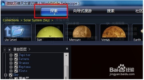 在探索中你可以自由漫游星空也可以打開保存好的記錄,如太陽系的某一行星。