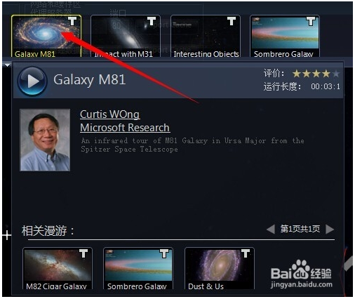 然后隨便點一個想到文件,軟件將全屏模式,漫游某個目的地,還會有“導游”解說。