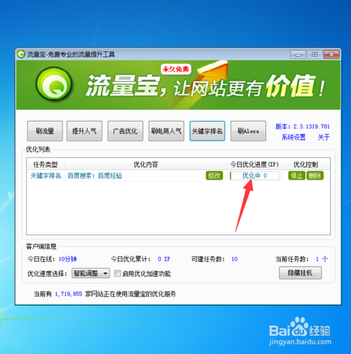 3.完成以上操作步驟之后,我們就可以掛著軟件就可以了,軟件會自動運(yùn)行優(yōu)化我們剛才設(shè)置才網(wǎng)站流量 如圖