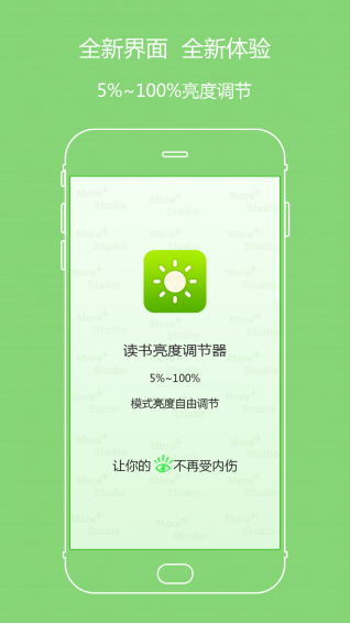 提供5%到100%任意亮度調(diào)節(jié),4種智能模式,濾光護(hù)眼模式,狀態(tài)欄調(diào)節(jié)功能,提升待機(jī)時(shí)長(zhǎng)40%,擴(kuò)展系統(tǒng)能力,讓亮度調(diào)節(jié)更加專業(yè),操作更加簡(jiǎn)單!摩嘎科技,專注提供簡(jiǎn)單,好用,接地氣的好工具!系統(tǒng)自帶的亮度調(diào)節(jié),黑暗中,刺眼的屏幕仍然讓你眼睛疲勞,影響枕邊人休息,4種模式,無(wú)限降低屏幕亮度,總有一個(gè)亮度適合你,夜晚微信、陌陌、購(gòu)物、閱讀、被窩必備!呵護(hù)您的眼睛,節(jié)省手機(jī)用電,就這么簡(jiǎn)單。