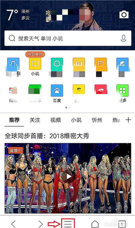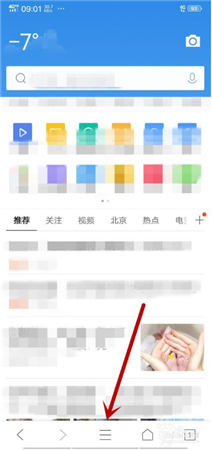 從手機(jī)將手機(jī)QQ瀏覽器打開,在界面的下方三條橫線的菜單按鈕,下圖演示。