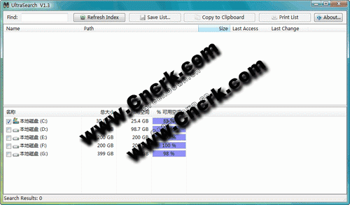 7、UltraSearch支持熱鍵CTRL選擇一個drivelist在所有驅(qū)動器。