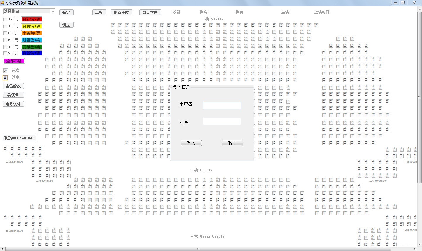 寧波大劇院出票系統(tǒng)是一款專門為大劇院提供出票管理系統(tǒng),圖形界面操作,鼠標(biāo)可以多個(gè)座位,同時(shí)出票。統(tǒng)計(jì)票據(jù)出票率,分析票價(jià)類型。