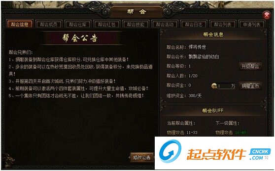6、幫主和副幫主可以通過(guò)消耗幫會(huì)資金來(lái)提升幫會(huì)等級(jí);