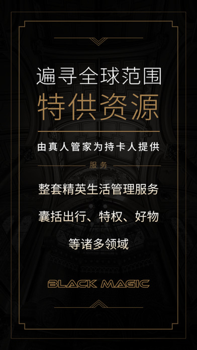 環(huán)球黑卡app是一款專為真人管家服務(wù)打造的應(yīng)用,這款軟件通過(guò)付費(fèi)會(huì)員制的方式限額招募會(huì)員,會(huì)員享有遍及全球的諸多特權(quán)服務(wù),是用戶全球旅行的貼心好幫手。