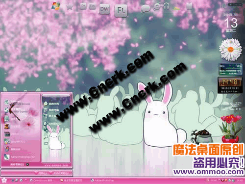 魔法桌面原創(chuàng)兔子賞櫻電腦桌面主題,壁紙主要以粉色為主,將可愛與浪漫結合在一起,快快來體驗吧