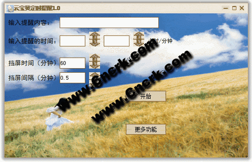 1、每隔一定時間彈出半透明窗口擋住屏幕提醒用戶休息。 2、設(shè)置定時提醒用戶 3、設(shè)置定時運行某程序。 4、長期對電腦工作人員可是要必備的。完全免費:)