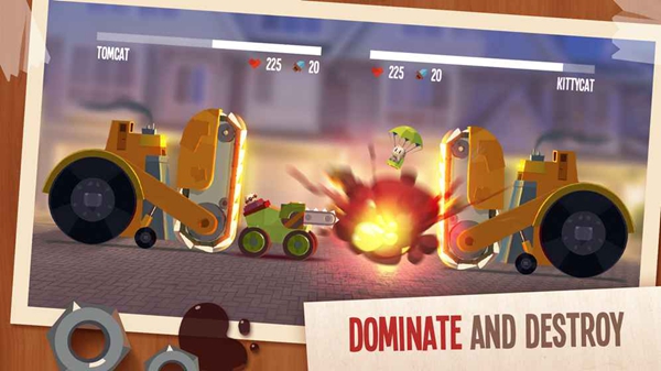 構(gòu)建自己的戰(zhàn)爭機器從收集部件和釋放它的力量與其他玩家無法控制的基于物理的戰(zhàn)斗!打擊你的方式從后院廢世界冠軍。 贏得新部件和使用它們來設(shè)計一個無與倫比的戰(zhàn)斗機器。 讓每一個對手大敗!!