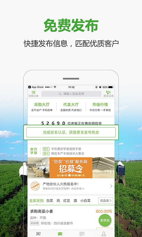 3、發(fā)布供求:可免費發(fā)布各類農產品供應信息和采購需求;
