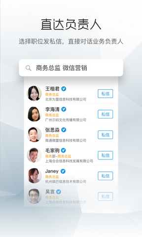 【直達負責(zé)人】 直接發(fā)私信給指定職位的聯(lián)系人,找老板,找采購不再求人