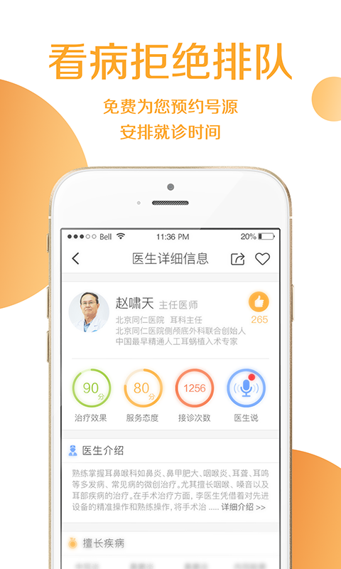1.覆蓋北京各科室知名專家號源;2.提供疾病在線問診,專家直接解答;