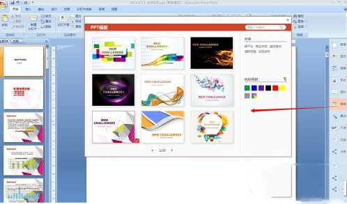 4.點(diǎn)擊側(cè)邊欄”換裝“,先給ppt整體換一個漂亮的模板吧,選中想要的模板,點(diǎn)擊右下角的”套用至文檔“即可,看看ppt是不是整體已經(jīng)大變樣了
