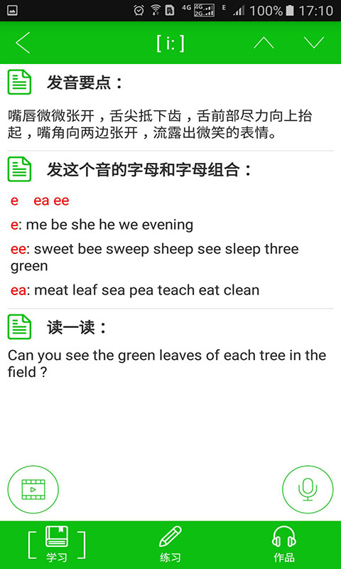 愛學(xué)音標(biāo)是學(xué)習(xí)國際音標(biāo)的好幫手,設(shè)有音標(biāo)分類、點(diǎn)讀、視頻演示、講解、練習(xí)、錄音等功能,讓學(xué)習(xí)者多角度掌握音標(biāo)發(fā)音規(guī)則和要領(lǐng),為正確朗讀單詞打下扎實(shí)的基礎(chǔ)。