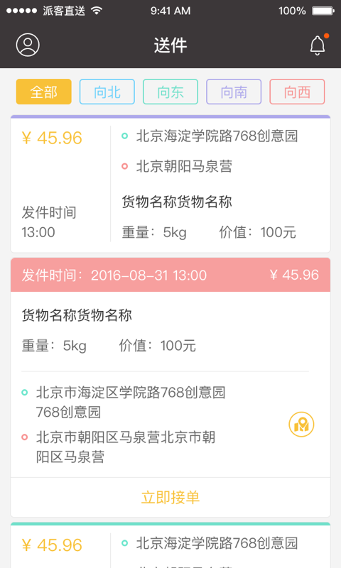 派客直送APP發(fā)單,車(chē)主根據(jù)線路匹配接單。隨時(shí)跟蹤物品定位,拒絕電動(dòng)自行車(chē)配送,保障物品安全,不給城市添“堵”。目前服務(wù)開(kāi)通北京,拒絕空駛,賺取養(yǎng)車(chē)錢(qián)!快來(lái)加入我們吧!