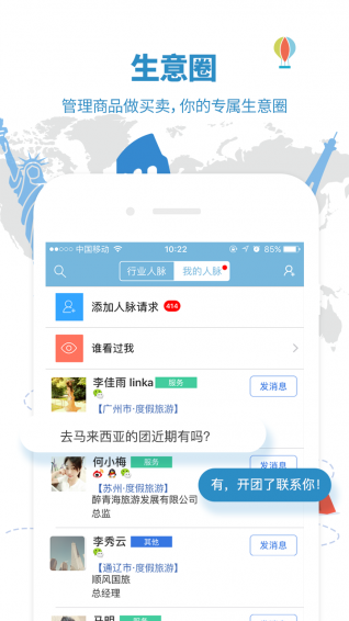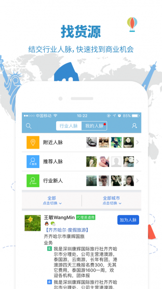 1.結(jié)交商旅行業(yè)人脈,快速找到商業(yè)機(jī)會(huì)2.整合國(guó)內(nèi)商旅優(yōu)質(zhì)服務(wù)信息,掌握第一手資源