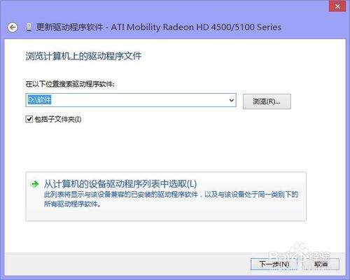 4、點(diǎn)“瀏覽”。接著找準(zhǔn)備好的驅(qū)動(dòng)程序文件夾,注意的是有些廠商會(huì)把多種類型的硬件壓制在一張盤中,有不同的操作系統(tǒng)版本,如forwin7、8或forwinxp。注意要選擇正確的版本,點(diǎn)擊下一步