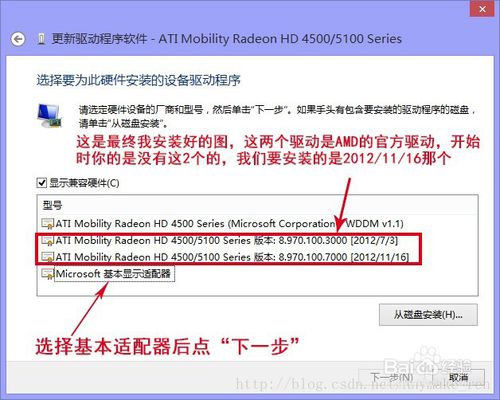 選擇“基本顯示適配器",點(diǎn)"下一步"就將微軟顯卡驅(qū)動(dòng)降為基本顯卡驅(qū)動(dòng)了。