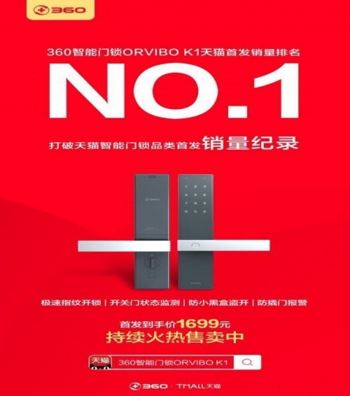 近年來,智能門鎖逐漸成為了智能家居產(chǎn)品中的明星。據(jù)國(guó)內(nèi)數(shù)據(jù)權(quán)威機(jī)構(gòu)易觀發(fā)布的《中國(guó)智能門鎖產(chǎn)業(yè)白皮書2017》顯示:隨著用戶消費(fèi)觀念轉(zhuǎn)變與傳統(tǒng)安防產(chǎn)品漏洞的頻出,用戶對(duì)智能安防產(chǎn)品的需求不斷攀升。面對(duì)用戶對(duì)智能安防產(chǎn)品的迫切需求,360推出全新智能門鎖產(chǎn)品——“360智能門鎖ORVIBO K1”(以下簡(jiǎn)稱:360智能門鎖K1),該產(chǎn)品9月9日在天貓商城正式發(fā)售。而據(jù)天貓商城相關(guān)數(shù)據(jù)顯示,360智能門鎖K1發(fā)售當(dāng)天便打破天貓智能門鎖品類首發(fā)銷量記錄,受到消費(fèi)者的喜愛與認(rèn)可。