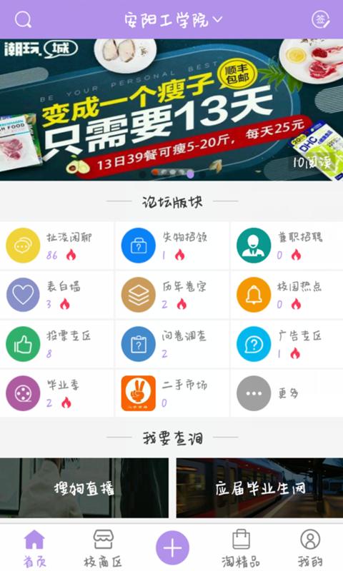 萬學(xué)論壇是一款專為學(xué)生打造的社交軟件,該軟件提供了便捷的校園服務(wù)功能,用戶可以通過“淘精品”板塊獲取購物優(yōu)惠,購買自己所需商品,同時還可以在論壇發(fā)布帖子,與人交流互動,分享日常生活。
