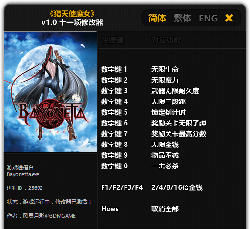 數(shù)字鍵1-無(wú)限生命數(shù)字鍵2-無(wú)限魔力