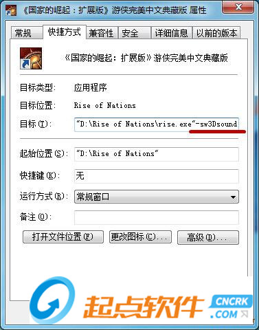 通過(guò)修改游戲快捷方式的參數(shù)在, 在游戲執(zhí)行目標(biāo)后面加上參數(shù)-sw3Dsound